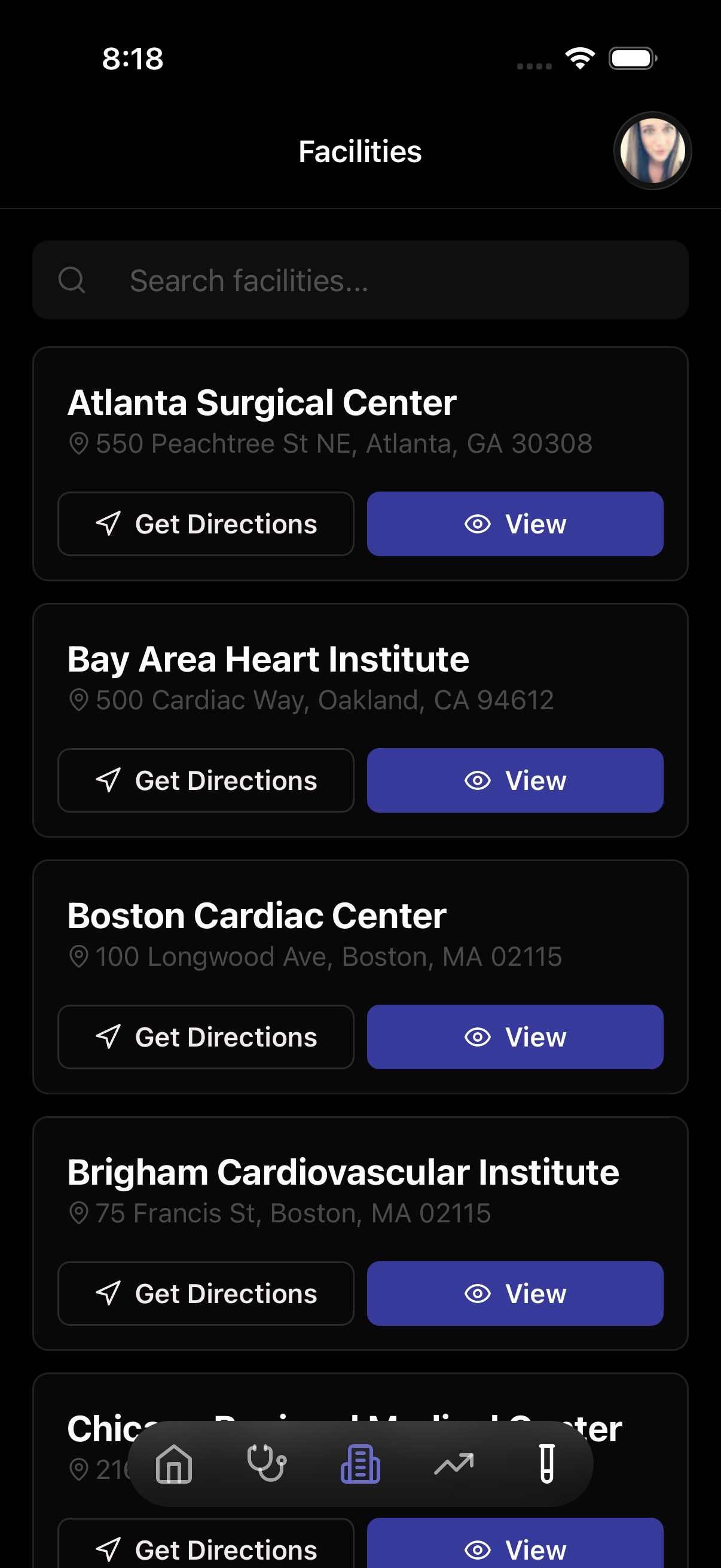 See all affiliated surgeons and active opportunities per facility