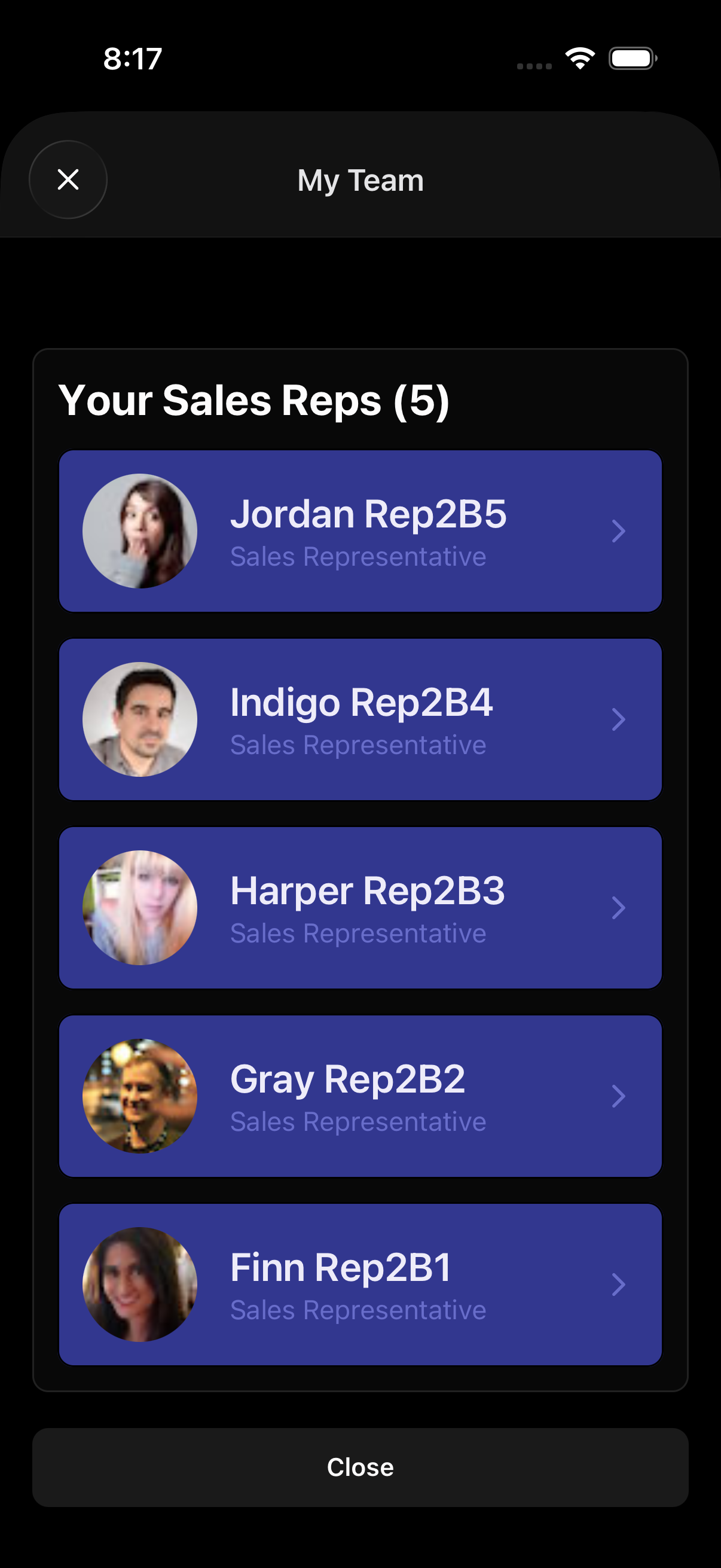 Admins, managers, team leads, reps, and associates
